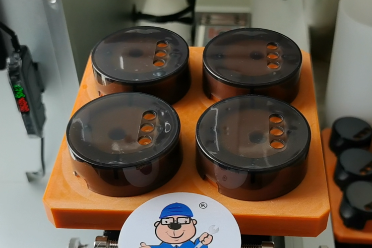 該設備采用整排貼膜技術,創新性地實現了同步貼附9個蓋子的突破性設計。多工位協同作業系統配合高精度傳送裝置,使設備每小時可穩定處理2400-3000個蓋子,生產效率提升8唄。通過機器視覺定位系統,貼膜精度達到±0.5mm,將產品不良率嚴格控制在1%以下。
