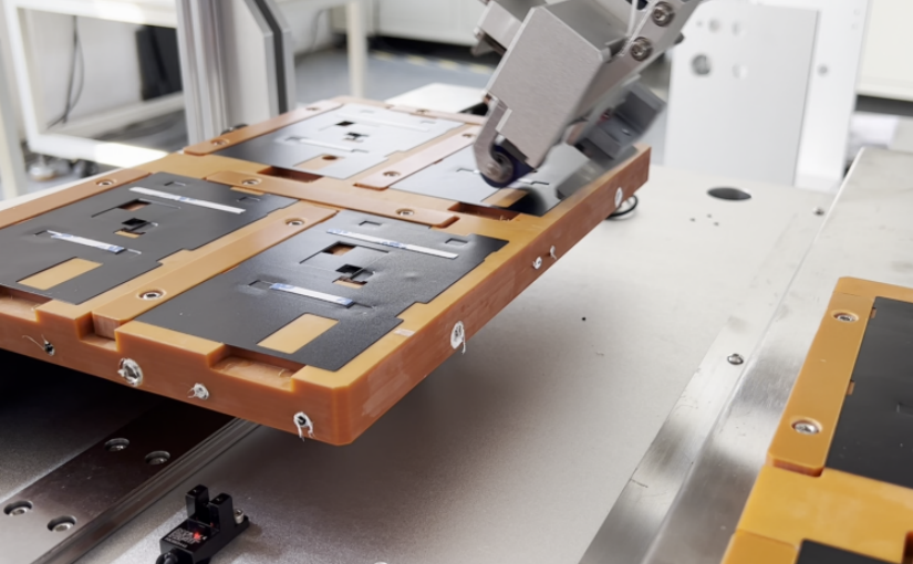 實際應用顯示,該設備(bei)貼膠(jiao)速度(du)突破150片/分(fen)鐘,良率穩定(ding)在99.8%以(yi)上,幫助某車企線束車間節省(sheng)6名人力,3個(ge)月回本。選擇雙通道(dao)高效貼膠(jiao)機,讓生產效率與品(pin)質同步飛躍!